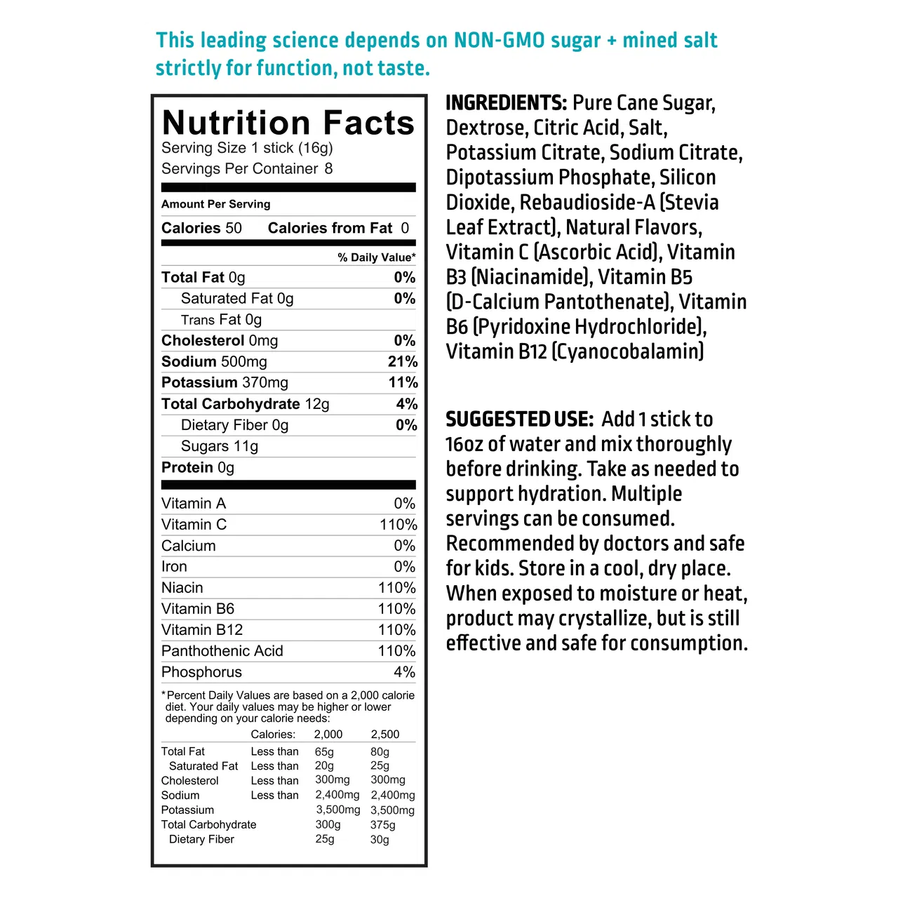 While artificial electrolytes can be produced for pennies using laboratory-created compounds and fillers, we source premium ingredients like organic coconut water and genuine sea salt.