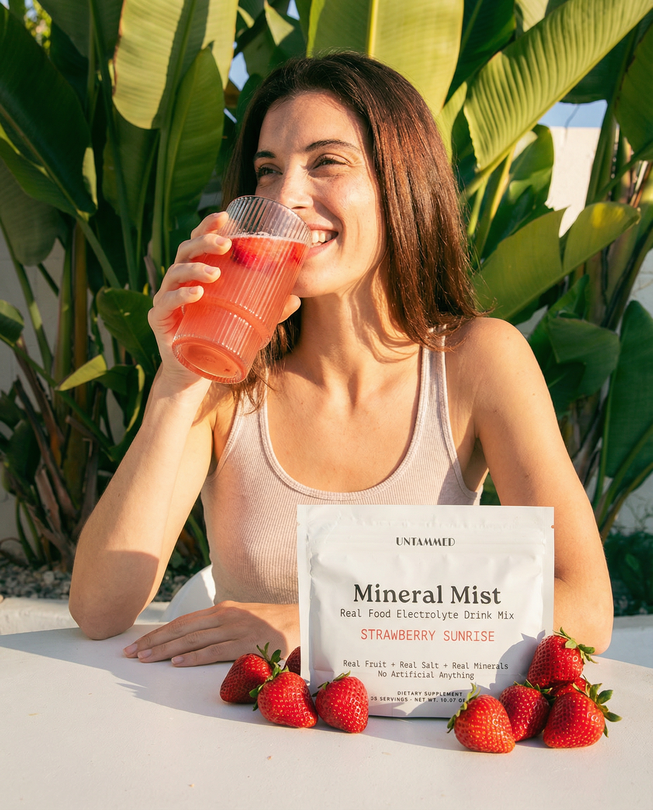 Mineral Mist uses real strawberry, coconut water, sea salt, and magnesium. Every ingredient does something. None of them fake anything.